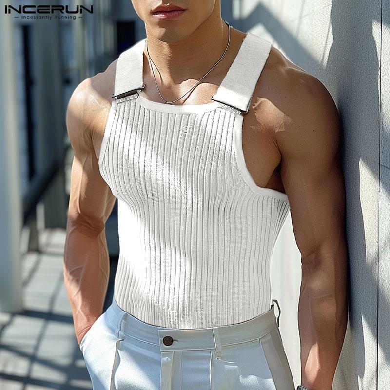INCERUN Мужские трикотажные майки без рукавов, повседневный жилет с ремешком