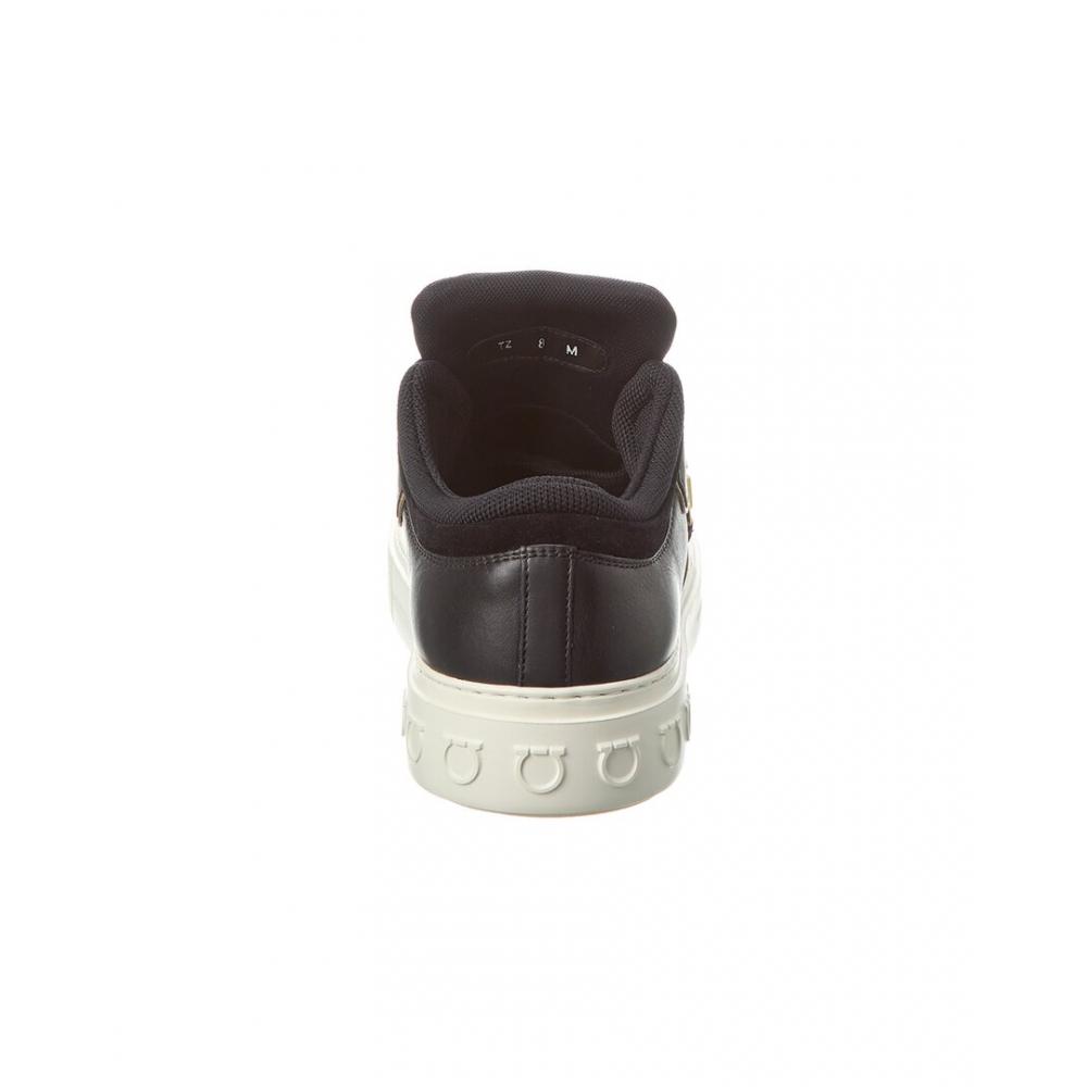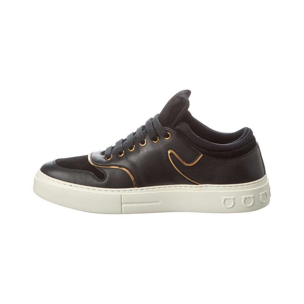 Представляем замшевые и кожаные кроссовки Ferragamo Beck от культового люксового бренда Salvatore Ferragamo. Эти модные кроссовки, сделанные в Италии, выполнены в элегантном сочетании черной кожи и замши с золотистыми деталями из фурнитуры.. Застежка на шнуровке, кожаная стелька с мягкой подкладкой и гладкая кожаная подошва обеспечивают комфорт и стиль.. Эти кроссовки с каблуком высотой 1,5 дюйма и платформой высотой 1,25 дюйма идеально подходят для придания изысканности любому повседневному образу.. Обратите внимание, что все измерения приблизительны и взяты с размера 8.. Будьте уверены, наши товары на 100% подлинные. Мы получаем их от надежных независимых поставщиков, чтобы гарантировать подлинность.