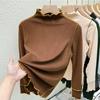 Осенне-зимняя футболка с высоким воротником и бархатной подкладкой в немецком стиле с деревянным краем ушка, модный топ