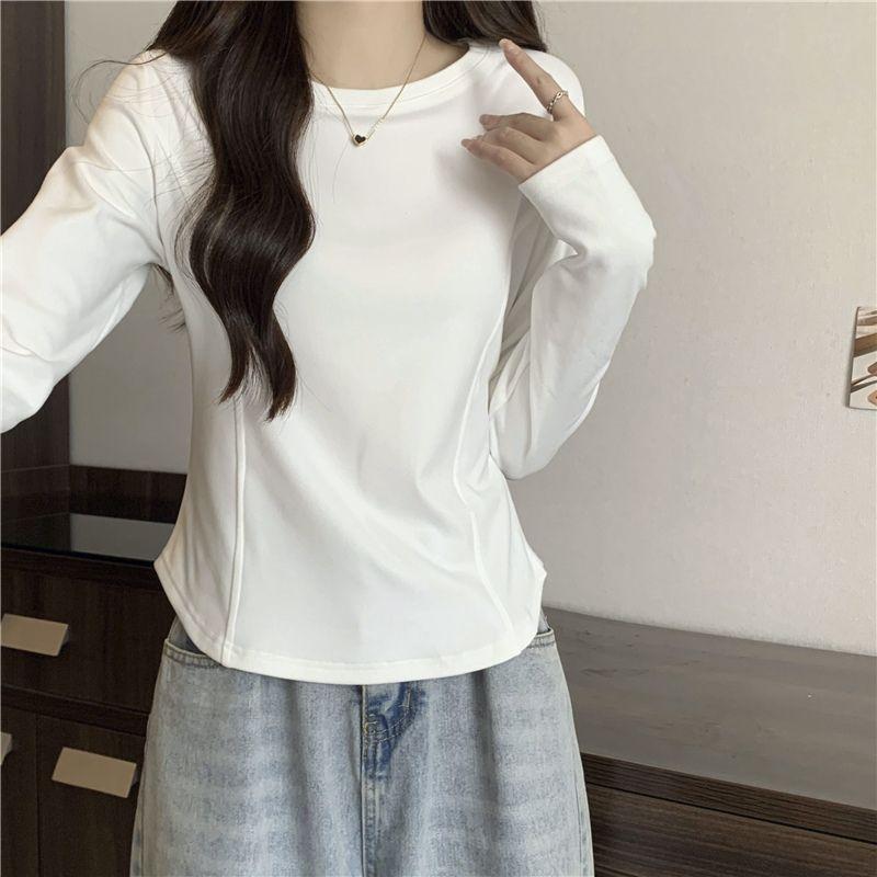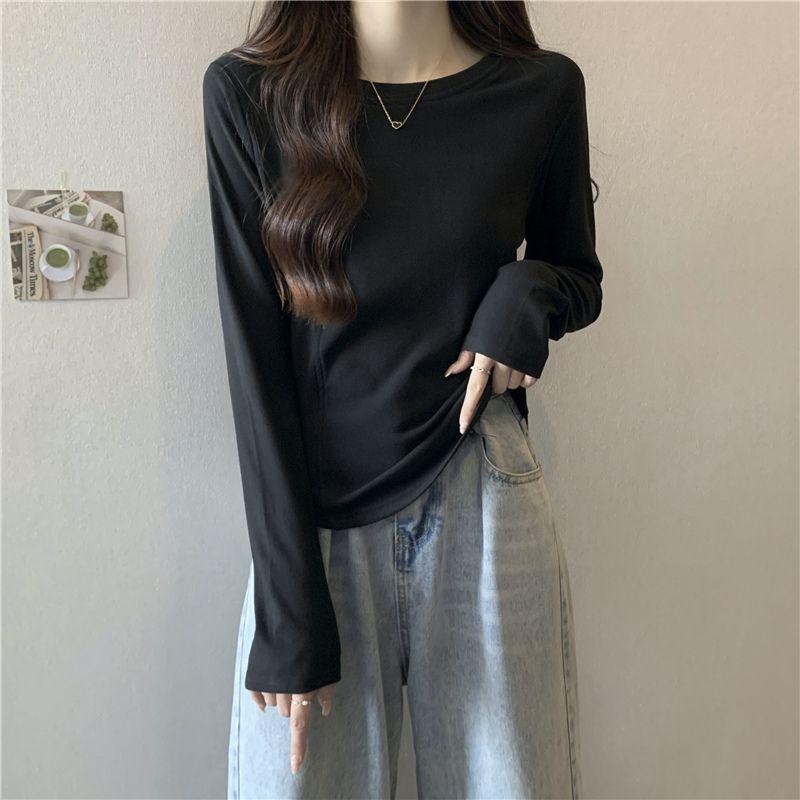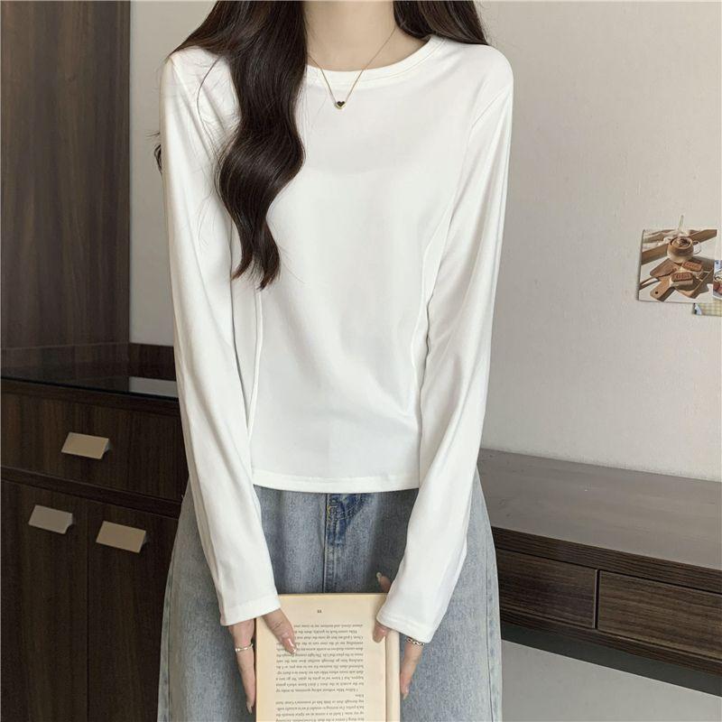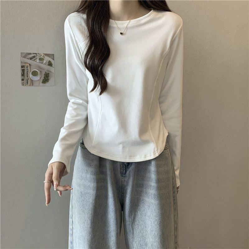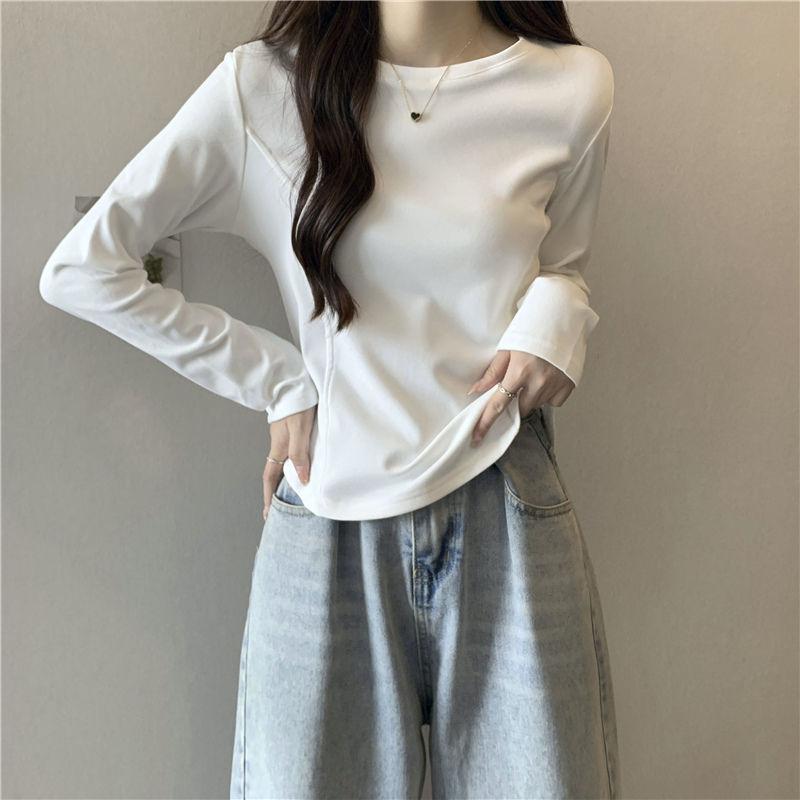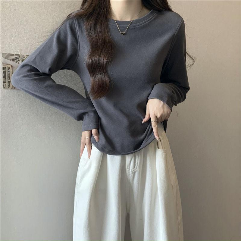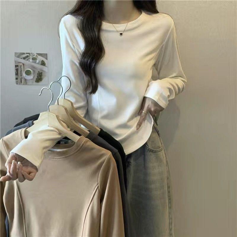 Осенне-зимняя немецкая бархатная нижняя рубашка, женская рубашка с круглым вырезом, теплая внутренняя укладка, облегающий топ с длинными рукавами и плечами