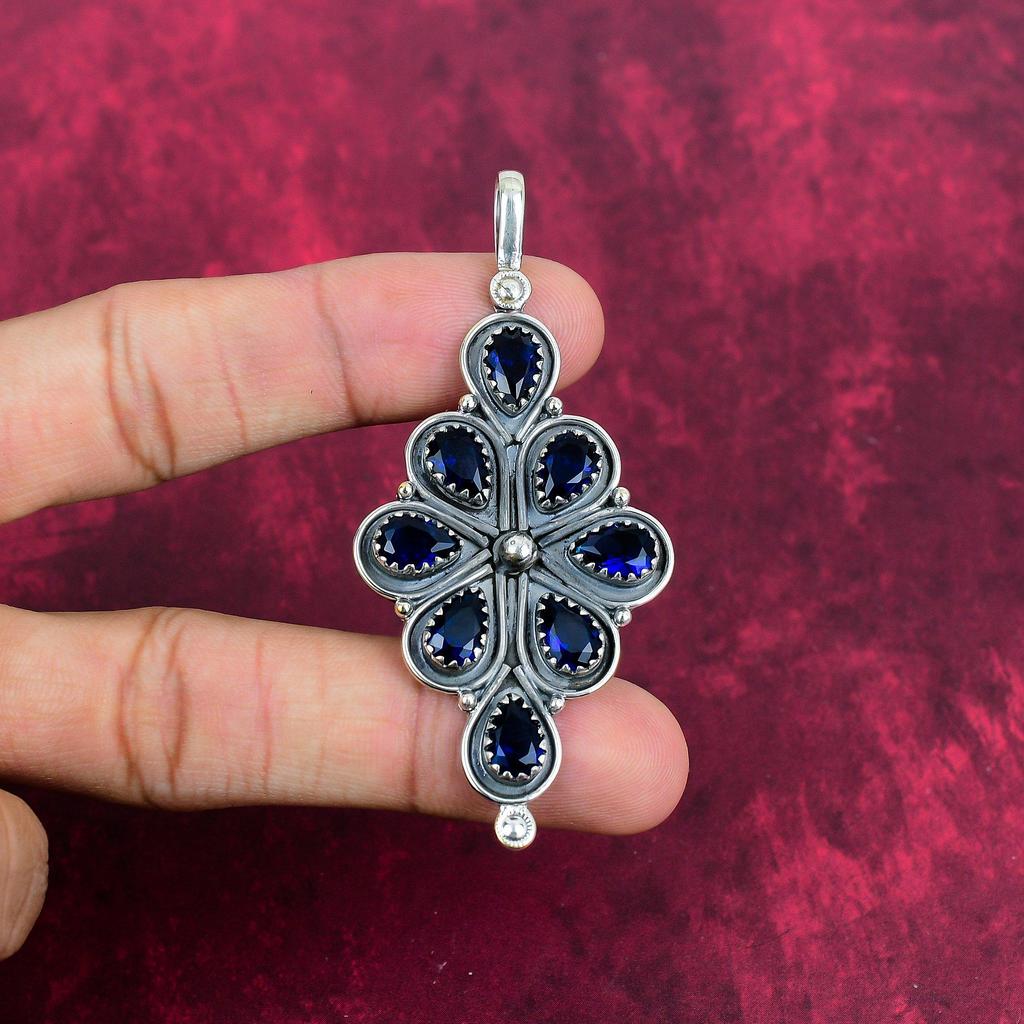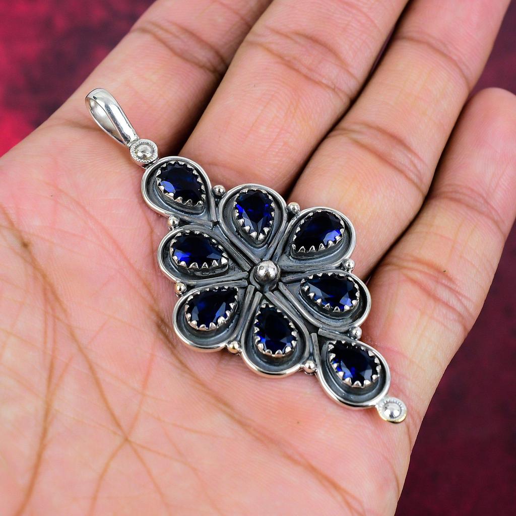 Подвеска с синим сапфиром, подвеска из драгоценного камня ручной работы, подвеска из стерлингового серебра 925 пробы, антикварные ювелирные изделия, для подарка на помолвку
