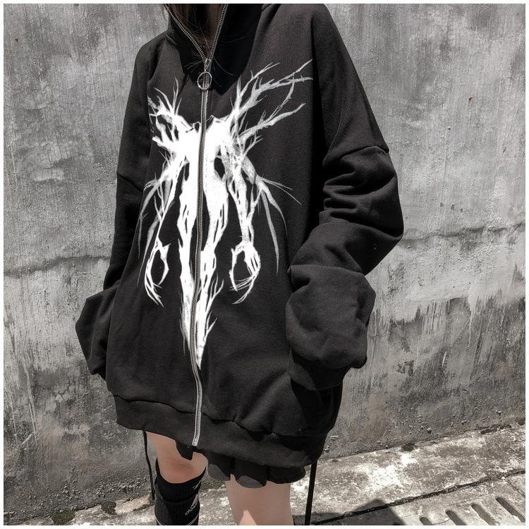 Весенне-осенняя женская толстовка с капюшоном на молнии с принтом и длинными рукавами, куртка с капюшоном