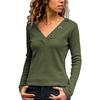 Весенне-осенняя однотонная повседневная женская футболка с v-образным вырезом на пуговицах и длинным рукавом