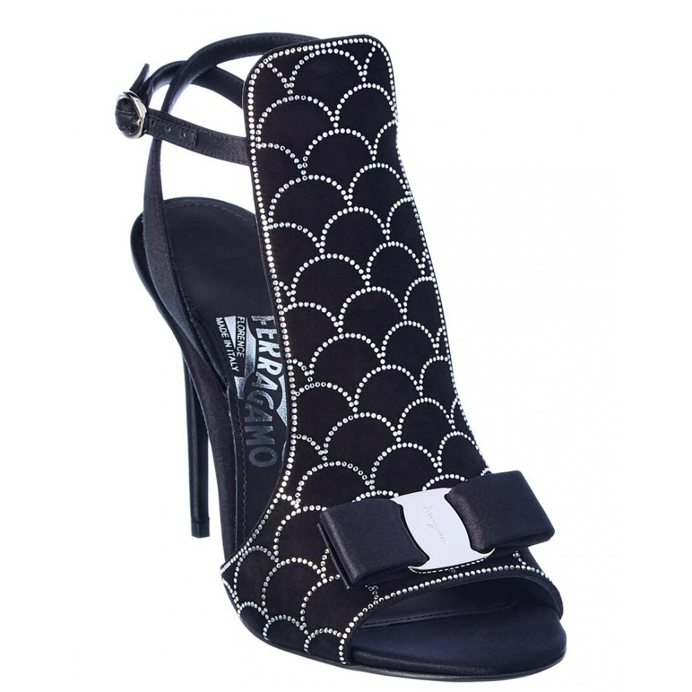 Ferragamo Salvatore Черные атласные замшевые сандалии Ferragamo Lascari