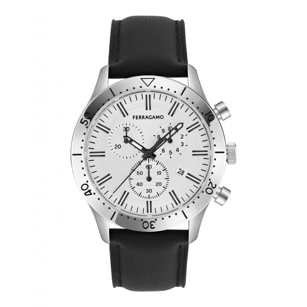 Salvatore Ferragamo Ferragamo Master Chrono Leather Watch Black Stainless Steel Silver — купить товар онлайн с бесплатной доставкой до всему миру!