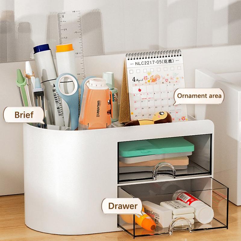 Держатель для ручек с выдвижным ящиком, многофункциональный настольный органайзер, ящик для хранения канцелярских принадлежностей