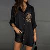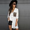 Верхняя женская свободная рубашка с леопардовым карманом и вставкой женская