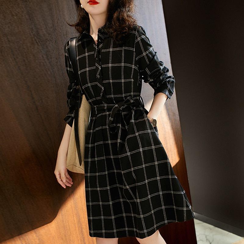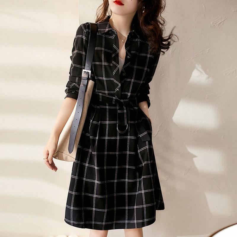 Весна и осень, французская клетчатая рубашка, юбка, тонкое платье с запахом на талии