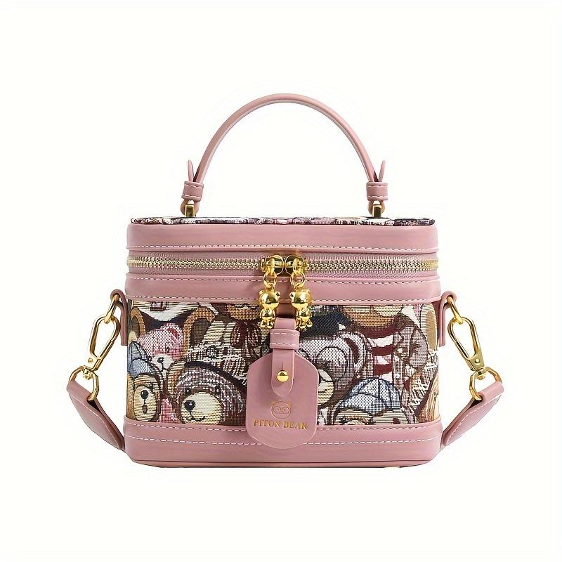 Сумка-ведро с милым медвежьим узором, мини-сумка с рисунком из мультфильма, женская сумка через плечо с широким ремешком