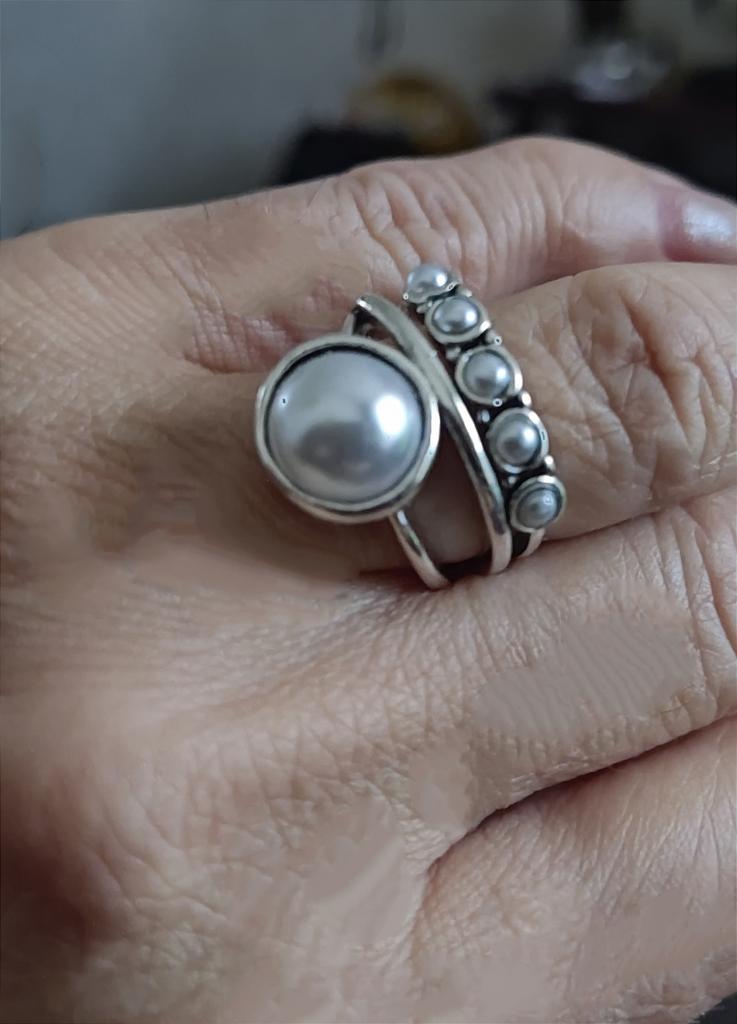 Элегантное винтажное кольцо с многослойным дизайном и инкрустацией из искусственного жемчуга — идеально подходит для повседневного ношения и вечеринок — аксессуар унисекс — купить товар онлайн с бесплатной доставкой по всему миру!