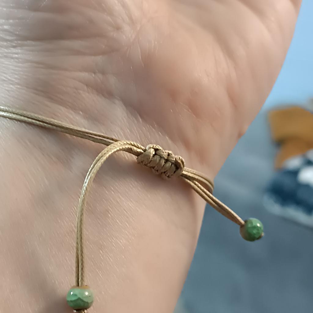 Очень милый браслет. Выглядит и сделан очень красиво качественно. Удобная затяжка с бусинами. Затяжку-замок надо доп проклеить или заплавить. Она распустилась. Хорошо что я умею такие узлы вязать.