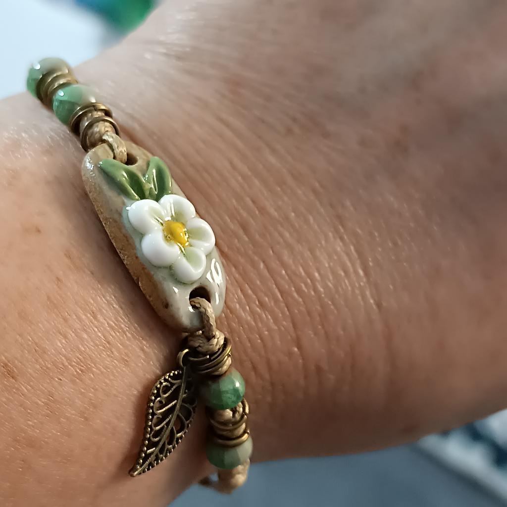 На фото продавца браслетик в части основной детали выглядит изящно, по факту пришёл с крупноватым цветочком , выглядит как лепка из пластики для творчества, поэтому, подойдёт только для ребёнка. К сожалению, мое фото не прикрепляется