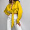 Плюс размер, весенне-осенняя женская модная темпераментная рубашка с лацканами и длинными рукавами, короткие женские топы