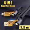 4 в 1 65 Вт PD 27 Вт Кабель USB C для быстрой зарядки для iPhone 15 14 13 12 11 XS XR Samsung Huawei Xiaomi Redmi POCO Realme Type-C Кабель для быстрого зарядного устройства