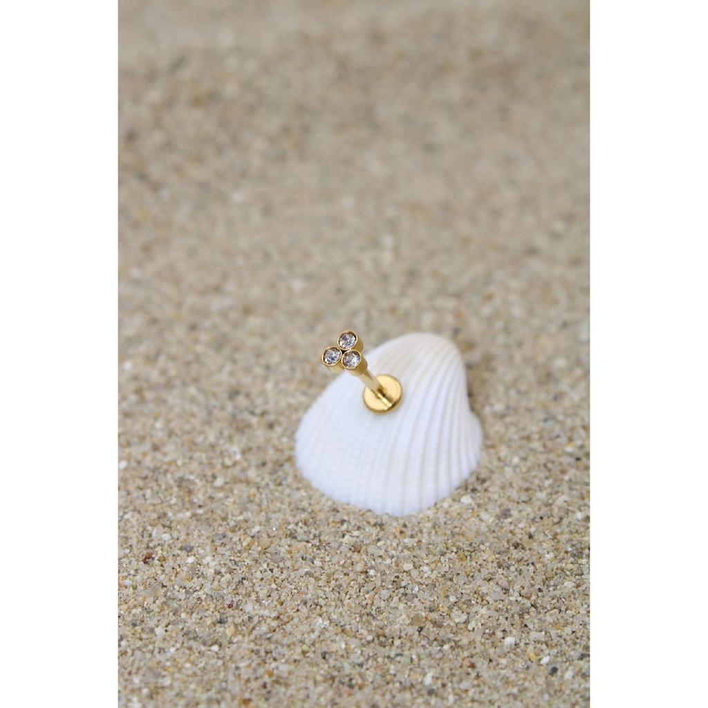 Пирсинг из хирургической стали, пирсинг, циркон, камень, хрящ, козелок, раковина, спираль, золотой цвет