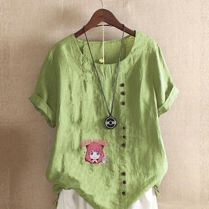 Женская мода, футболка с коротким рукавом и круглым вырезом, повседневная хлопково-льняная рубашка с рисунком, свободная летняя блузка с героями мультфильмов для отдыха, топы