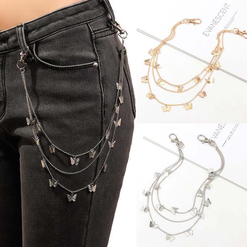 Панк-стрит, пояс-бабочка, пояс для брюк, цепочка, многослойный брелок с крючком в стиле хип-хоп, многослойные украшения