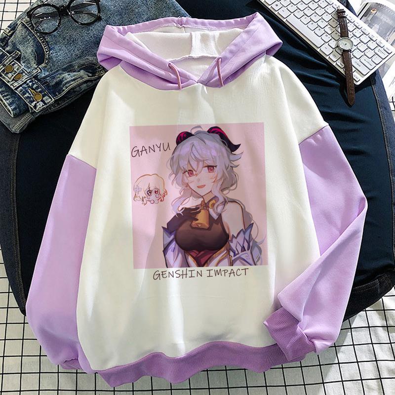 Толстовки для женщин Game Genshin Impact Splicing, 3D свитшот для пар с длинными рукавами, пуловер для косплея, большая толстовка для девочек
