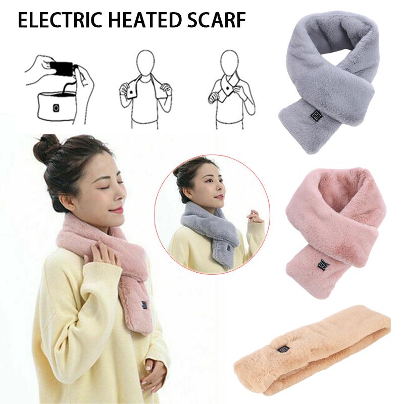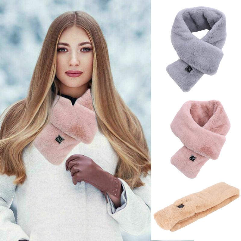 Электрический зимний теплый шарф с подогревом из искусственного меха кролика, перезаряжаемый через USB, с контролем температуры, нагревающийся шейный платок, шарф для женщин