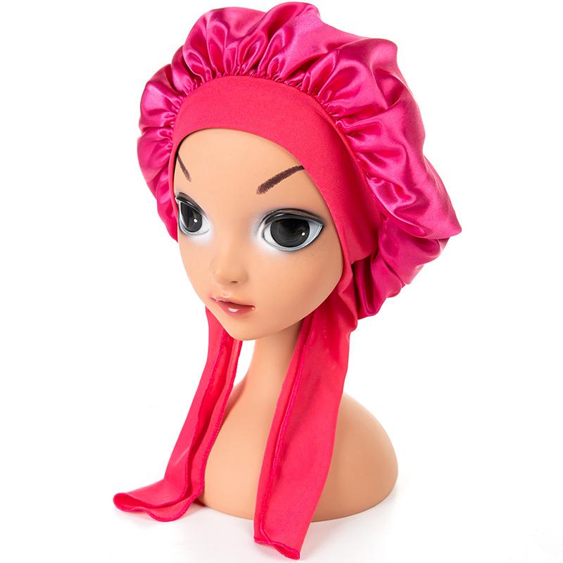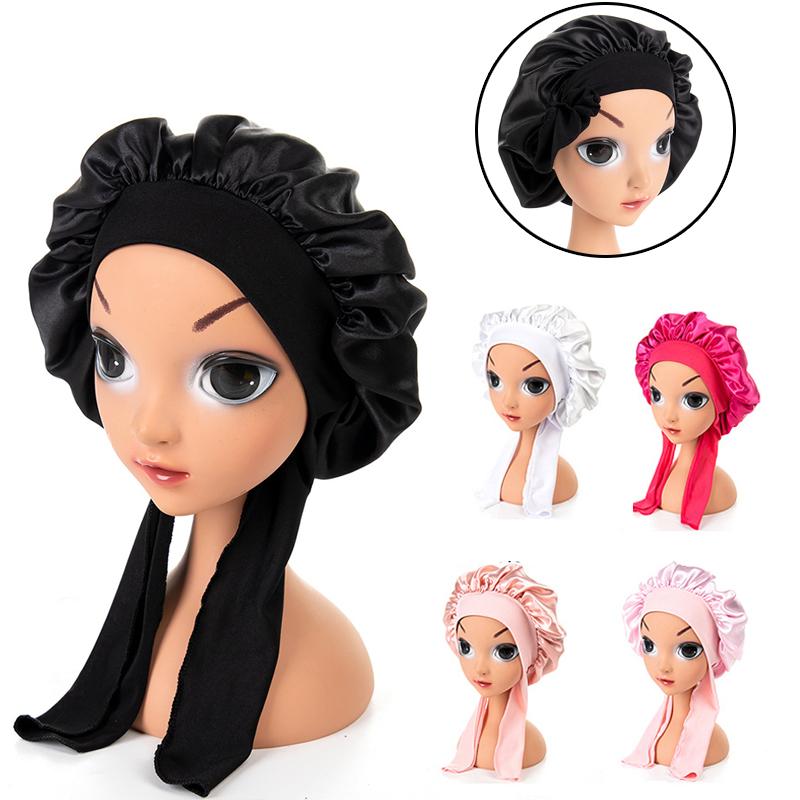 Детская шелковая атласная шапочка для сна, широкая регулируемая эластичная шапка для волос, головной убор