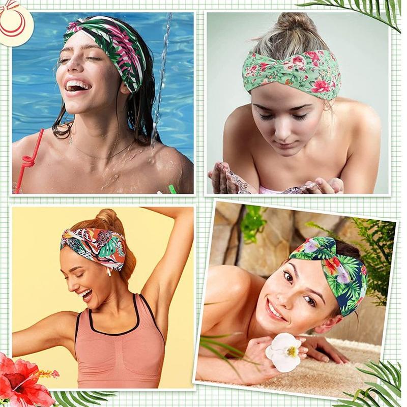Женская мода Спортивная повязка на голову с 3D цветочным принтом, впитывающая пот, Дышащая быстросохнущая пляжная повязка для йоги для бега, шикарная нескользящая повязка на голову в виде тюрбана