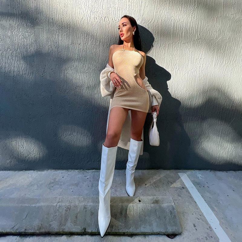 Женское женское летнее модное платье без рукавов с лямкой на шее и боковой талией, сплошное цветное сексуальное платье с открытой спиной