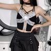 Готическая фея гранж кружева ажурные топы эстетичные сексуальные черные бретельки спагетти укороченные топы с открытой спиной Y2K уличная одежда панк топы