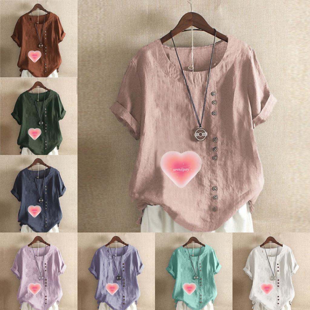 Женская модная футболка с круглым вырезом и коротким рукавом, повседневная хлопковая льняная рубашка с рисунком, свободная розовая летняя блузка с принтом «Любовь», топы