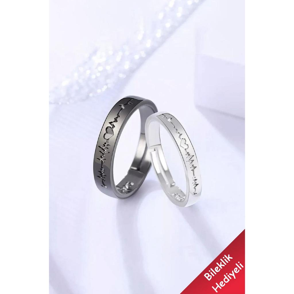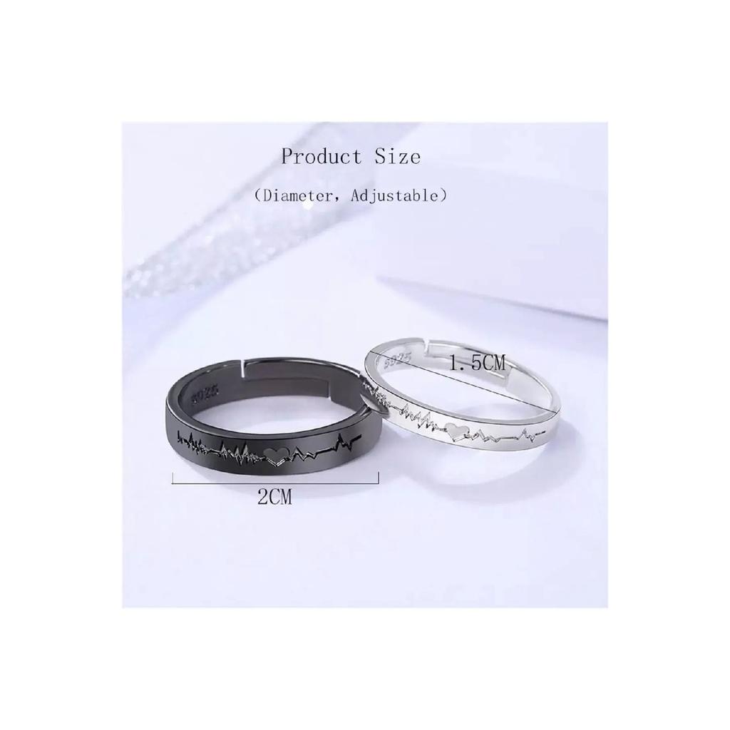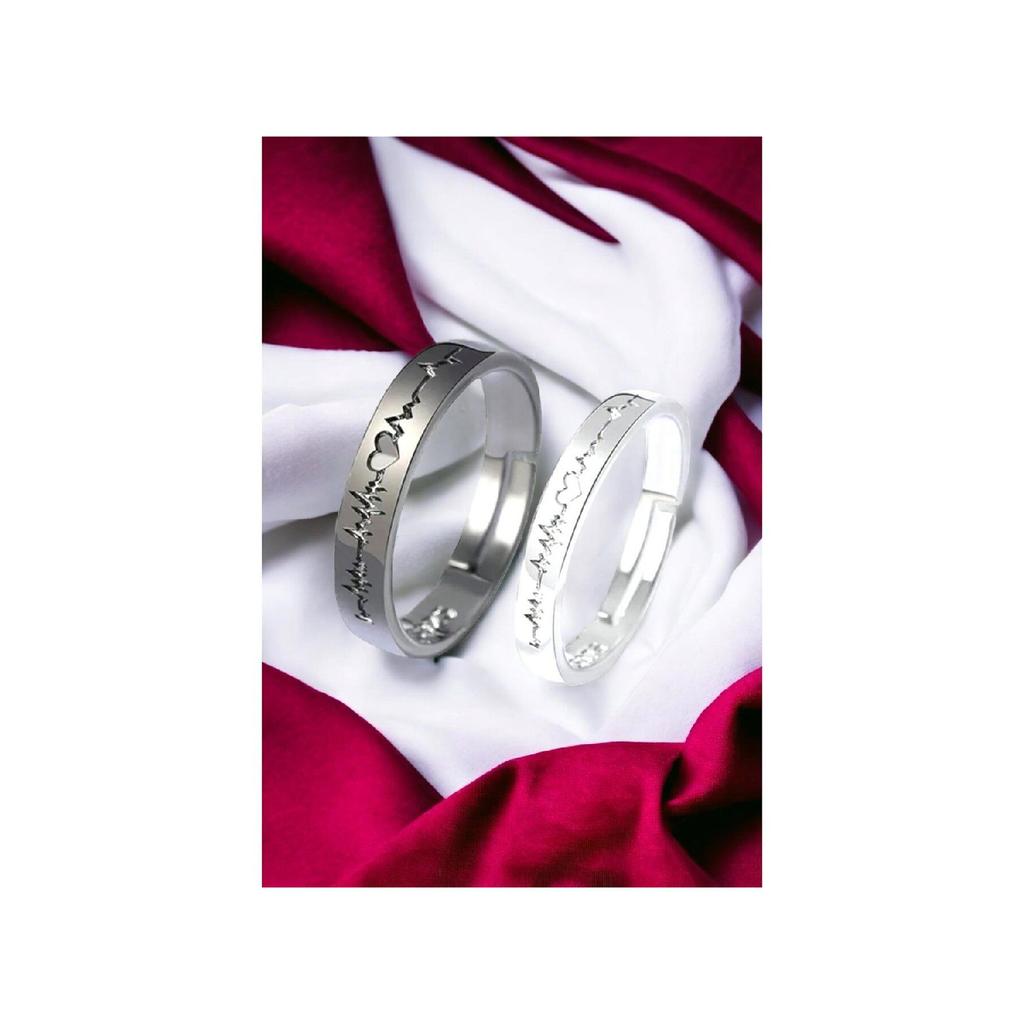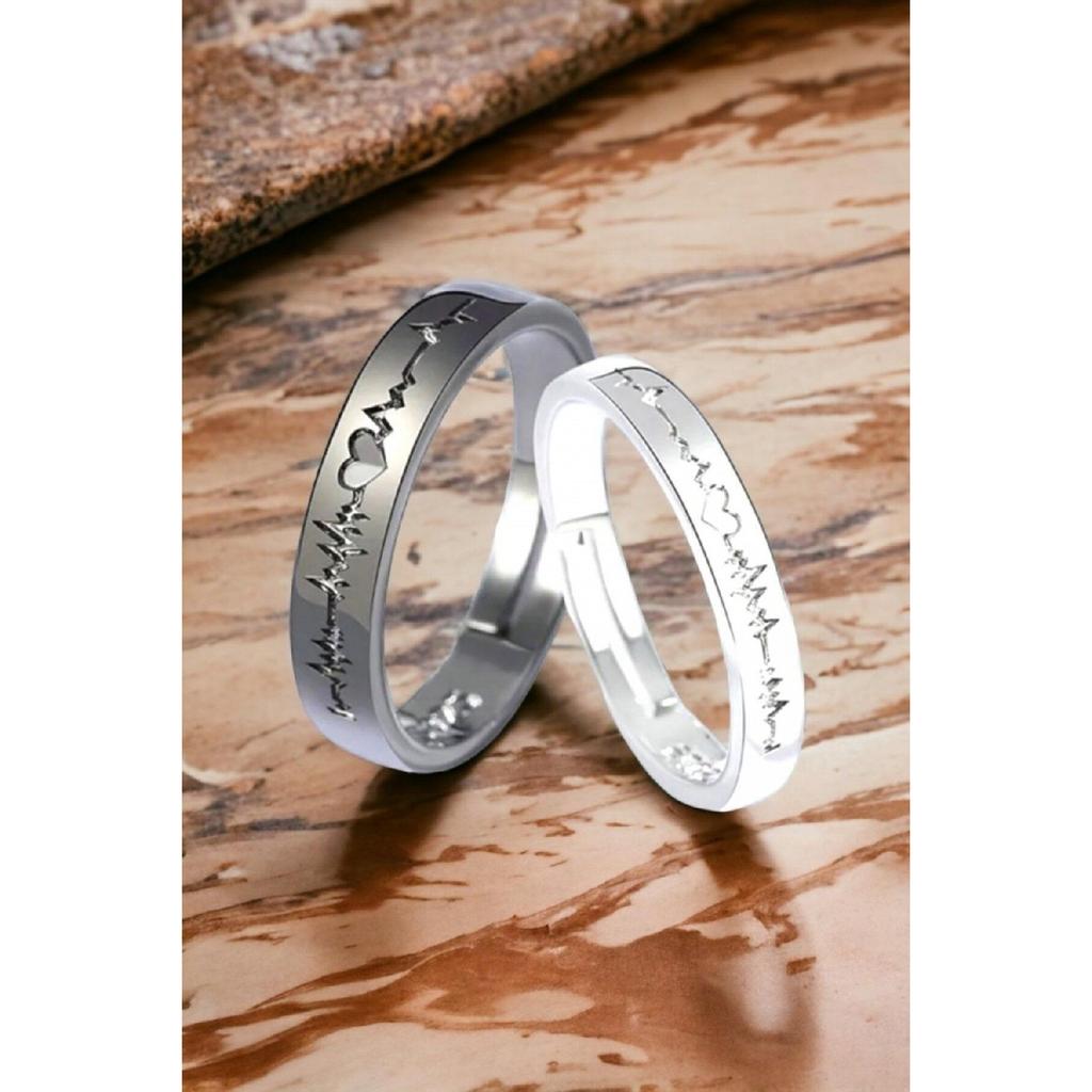 Кольцо для пары Heartbeat. Набор обручальных колец из 2 регулируемых посеребренных колец.