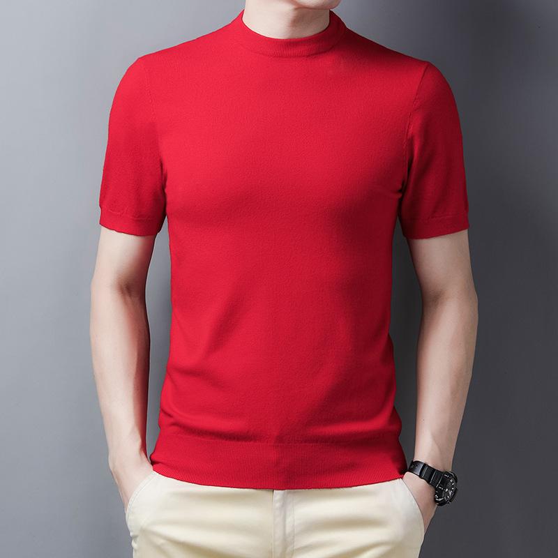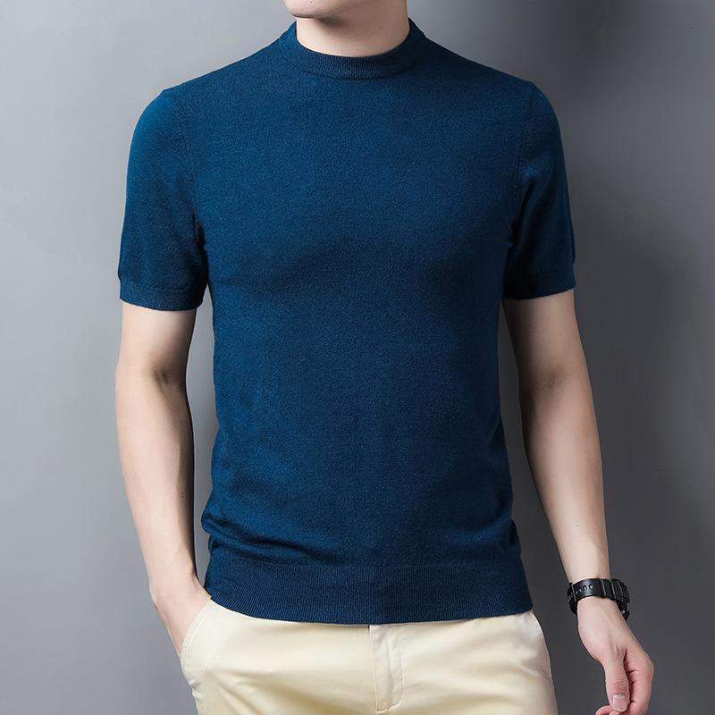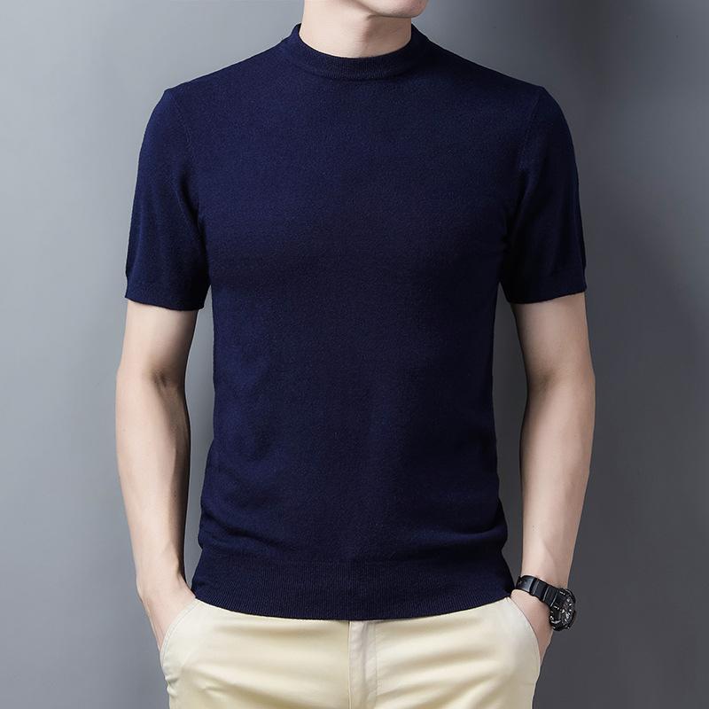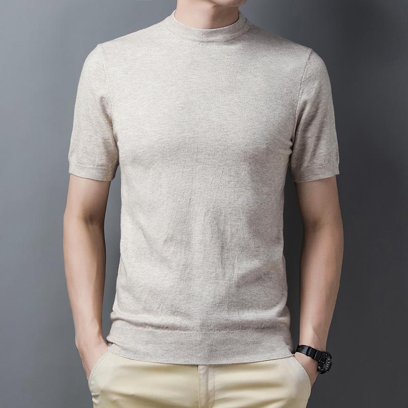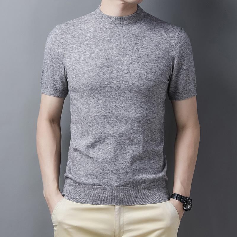 Весенний мужской свитер с коротким рукавом в рубчик, повседневная молодежная рубашка с круглым вырезом и прямой трубкой