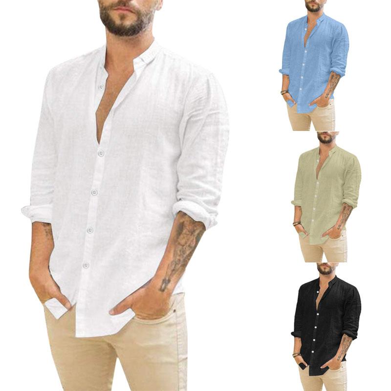 Мужские льняные рубашки с длинными рукавами, летние однотонные свободные повседневные рубашки, блузки, топы — купить товар онлайн с бесплатной доставкой по всему миру!