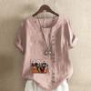 Женская модная семейная футболка с круглым вырезом и короткими рукавами, повседневная хлопково-льняная рубашка с рисунком, свободная летняя блузка для отдыха, топы