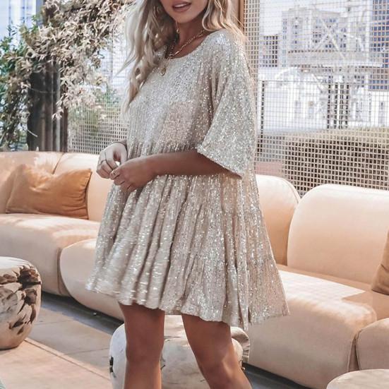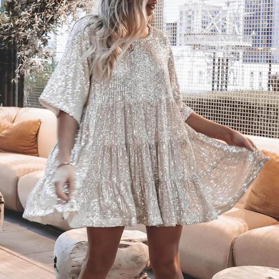 Характеристики: Блестящие пайетки, А-силуэт, Большие качели