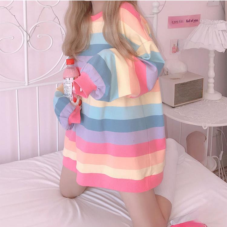 Весна-Осень, тонкая повседневная толстовка с капюшоном в радужную полоску, толстовка с длинными рукавами, женские топы с круглым вырезом и длинными рукавами y2k, уличная одежда, женские розовые толстовки — купить товар онлайн с бесплатной доставкой по всему миру!