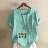 Женская новая модная льняная рубашка с круглым вырезом и коротким рукавом, футболка с принтом «Три детектива», летняя женская повседневная блузка больших размеров