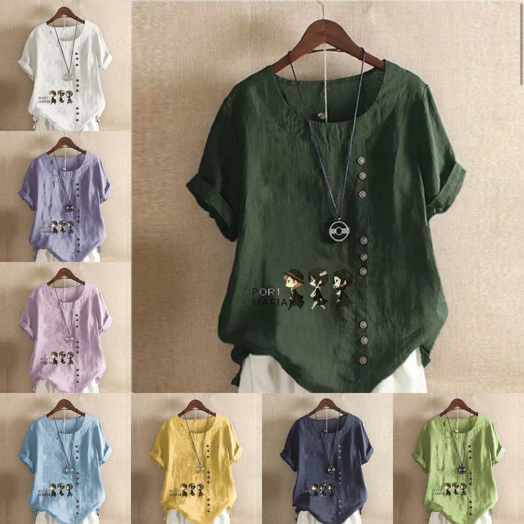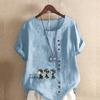 Женская новая модная льняная рубашка с круглым вырезом и коротким рукавом, футболка с принтом «Три детектива», летняя женская повседневная блузка больших размеров — купить товар онлайн с бесплатной доставкой по всему миру!