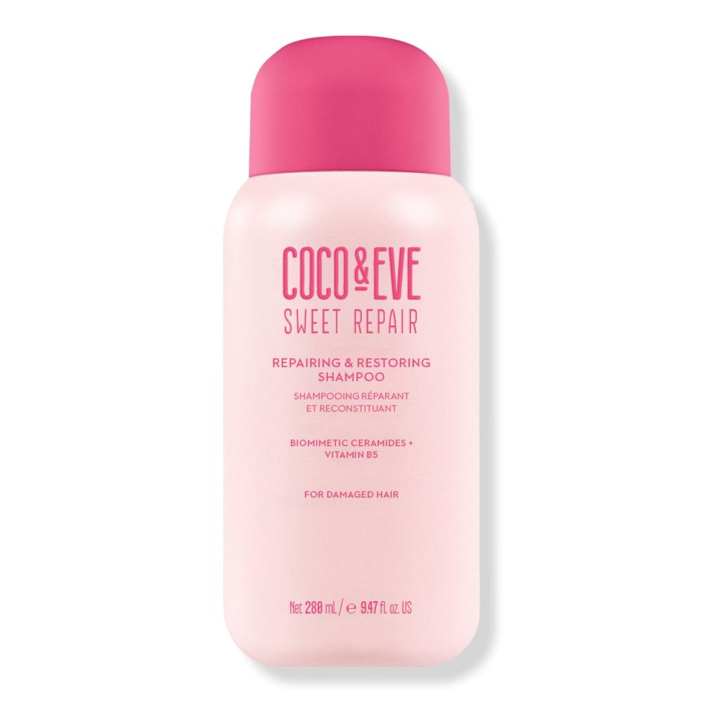 Восстанавливающий шампунь Coco & Eve Sweet Repair очищает, укрепляет и омолаживает поврежденные волосы.. Насыщенный витамином B5 и биомиметическими керамидами волосы питаются, кутикула волос защищается, что снижает повреждение волос и уменьшает секущиеся кончики.