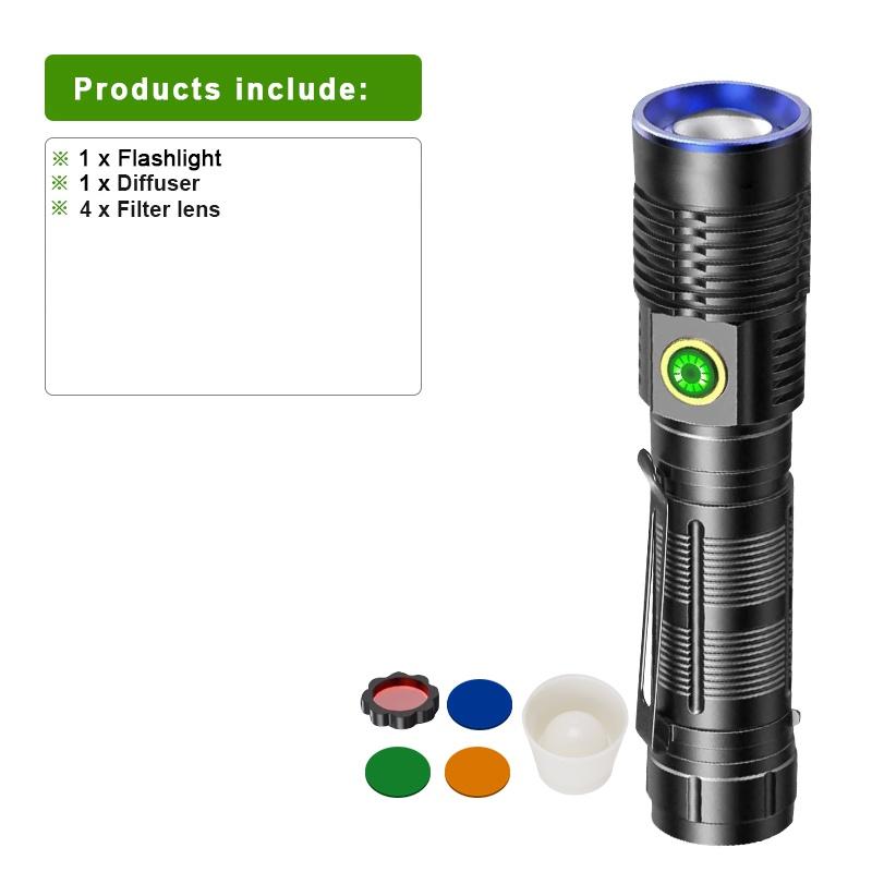 Режим освещения: сильный свет, слабый свет, быстрая вспышка, двойной щелчок, чтобы переключить суперяркость.