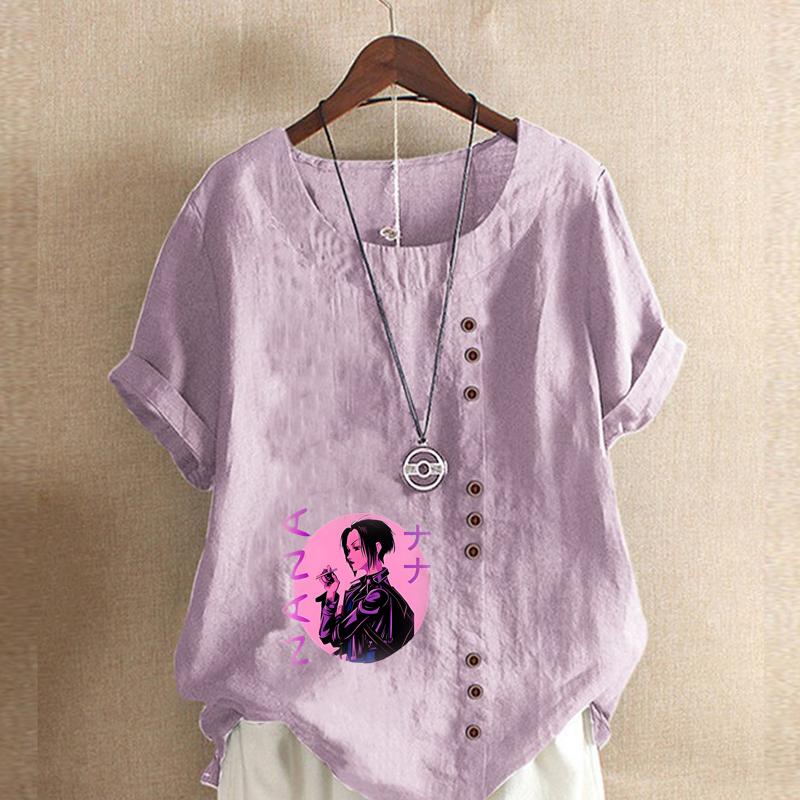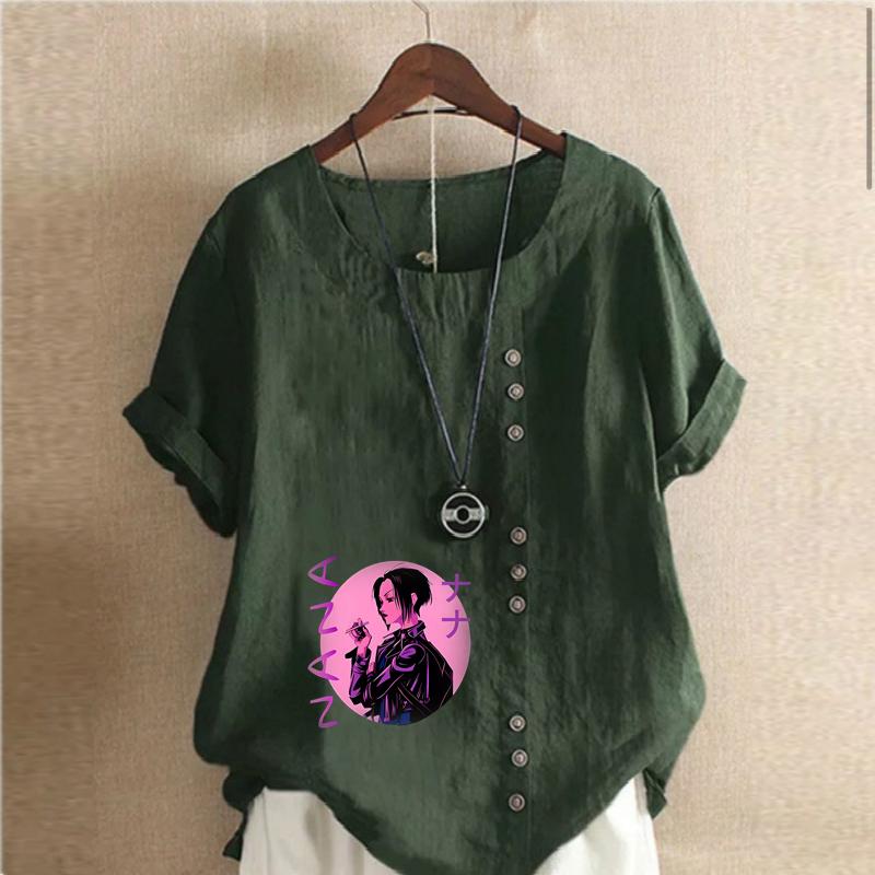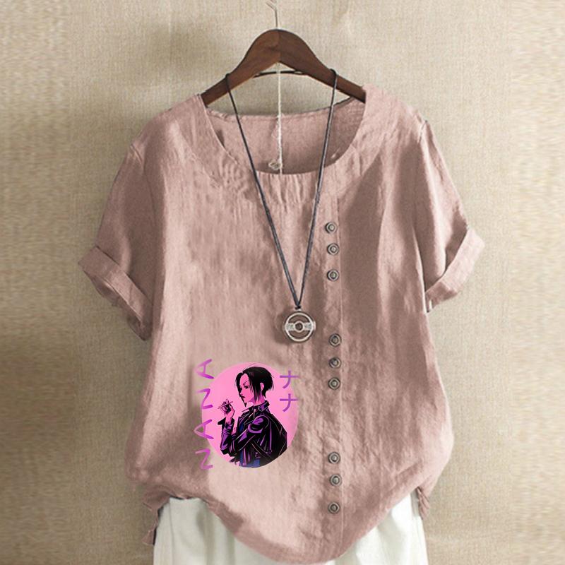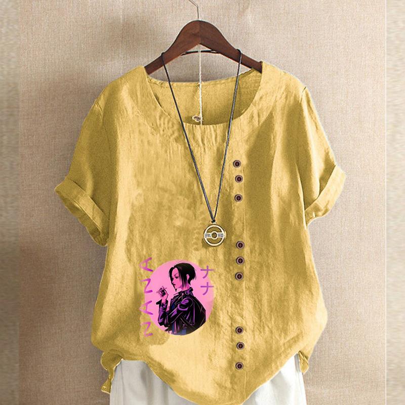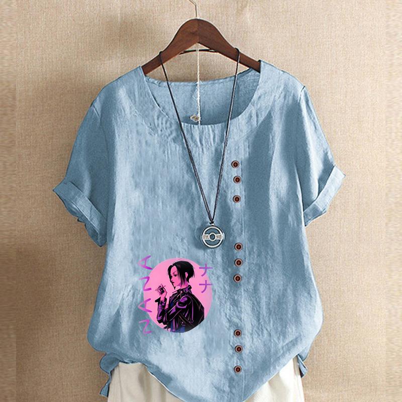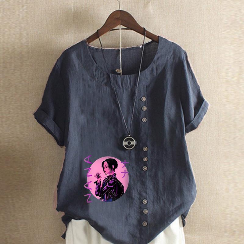Женская мода Крутая девушка Принт Круглый вырез Короткий рукав Футболка Повседневная Хлопок Лен Графическая Рубашка Досуг Свободная Летняя Блузка Топы