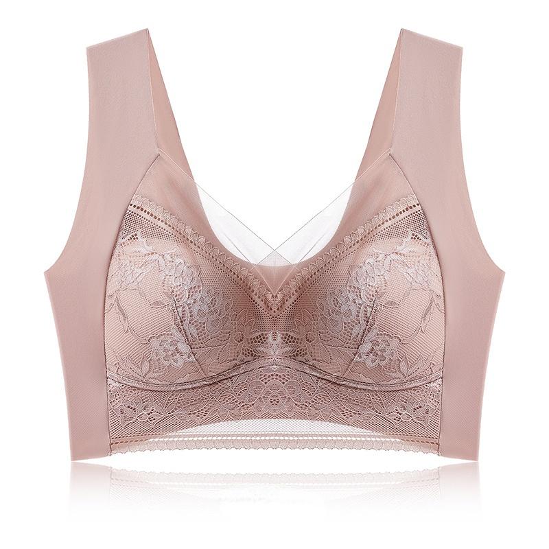 Цельный кружевной бюстгальтер с фиксированной чашкой сзади без стального кольца, бюстгальтер с кружевной оберткой, женское нижнее белье