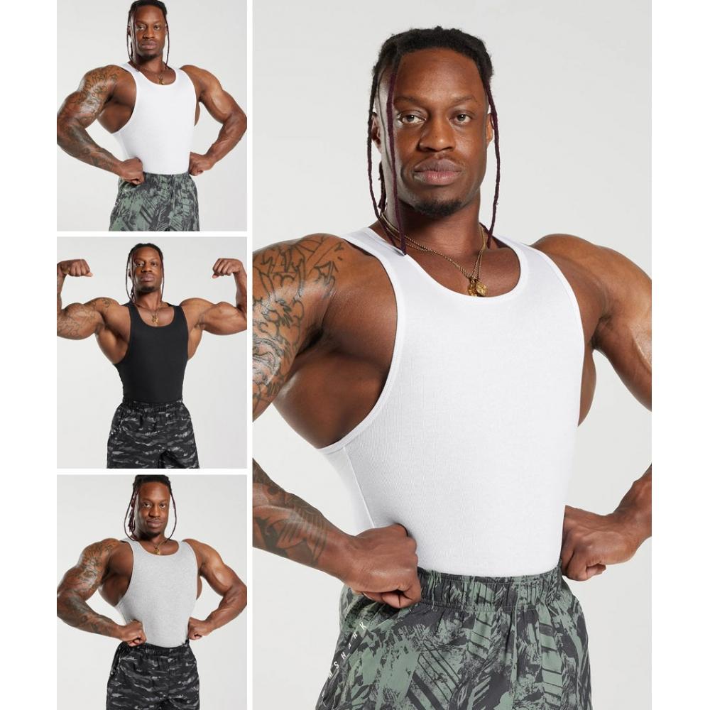 наименование товара: Gymshark Ribbed Tank 3-Pack Белый/Черный/Каменный Серый Мел (Модель №: A5A2E-WCC7). Эта майка-топ изготовлена из мягкой хлопчатобумажной ткани в рубчик, идеально подходит для тренировок рук в день и имеет классический дизайн майки.. Он создан специально для того, чтобы подчеркнуть вашу фигуру и продемонстрировать результаты вашей упорной работы.