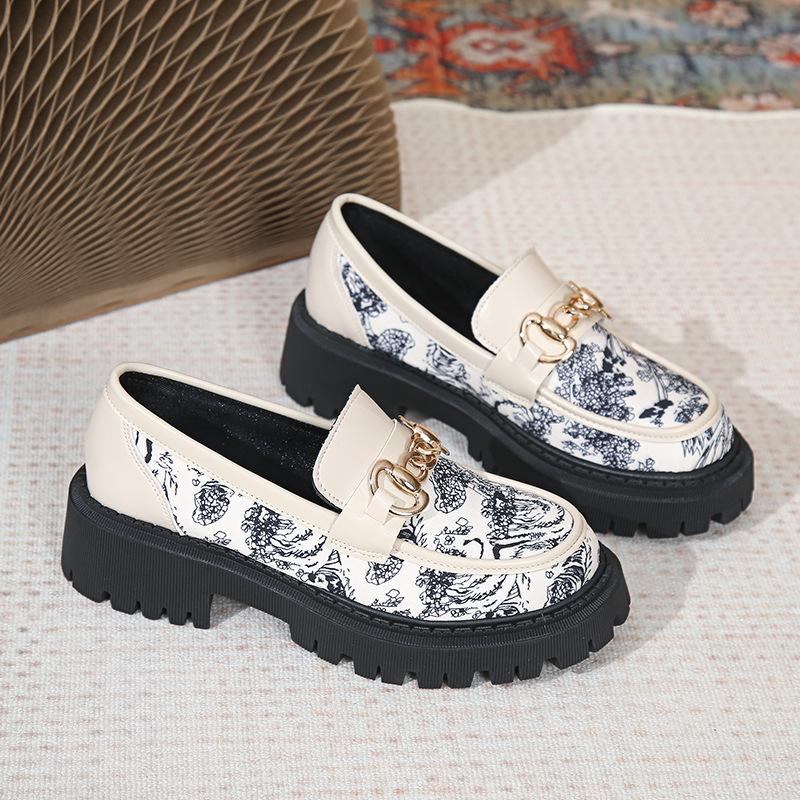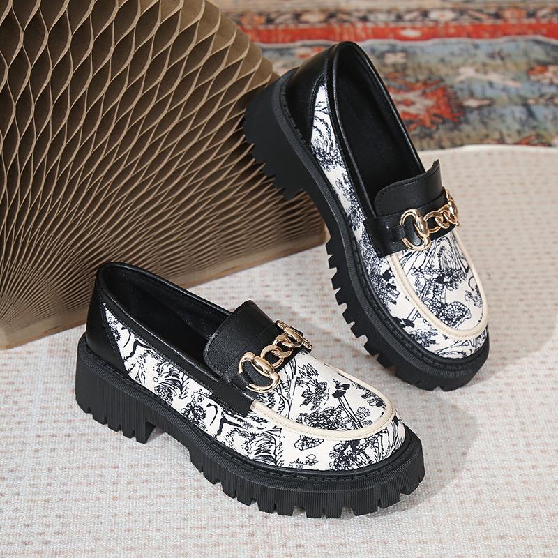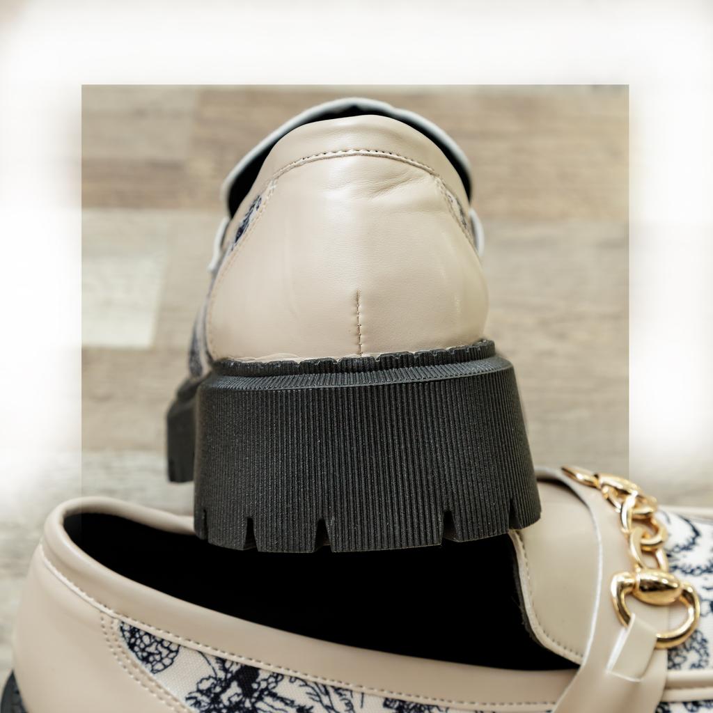 Мокасины с принтом. Женская обувь. Дизайнерская обувь на платформе. Туфли, увеличивающие рост. Туфли без шнуровки с металлической цепочкой.