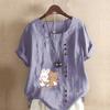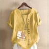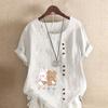 Женская новая модная льняная рубашка с круглым вырезом и коротким рукавом, с принтом кролика и медведя, летняя женская повседневная блузка больших размеров, топы — купить товар онлайн с бесплатной доставкой по всему миру!