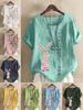 Женская новая модная льняная рубашка с круглым вырезом и коротким рукавом, с принтом кролика и медведя, летняя женская повседневная блузка больших размеров, топы