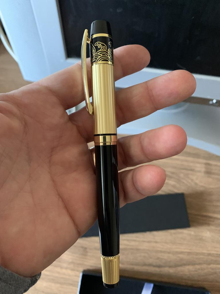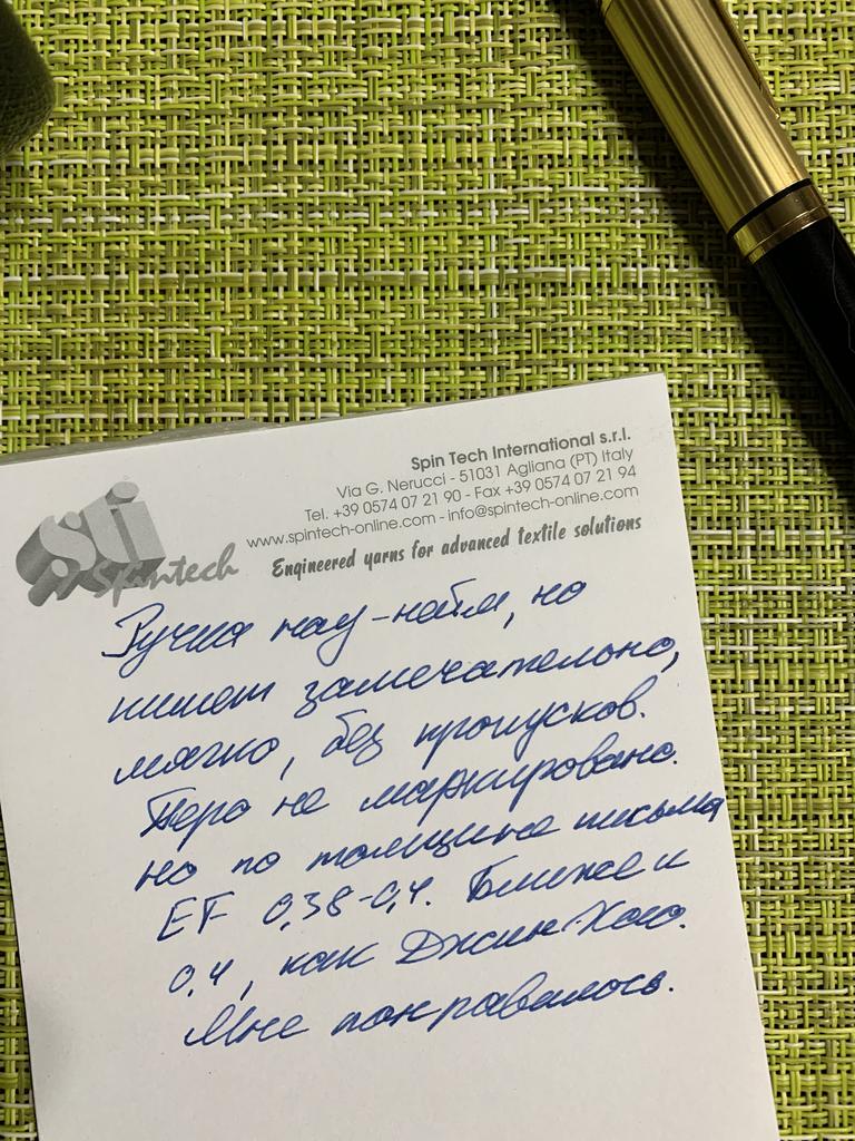 Отличная ручка, хотя и ноу-нейм. Перо действительно EF (0,38-0,4 мм). Подача довольно сухая по сравнению с ХонгДиан или Джинхао, но зато очень хорошо подходит к чернилам Пеликан 4001 Блэк Блю. Ручка красивая, пишет замечательно.
