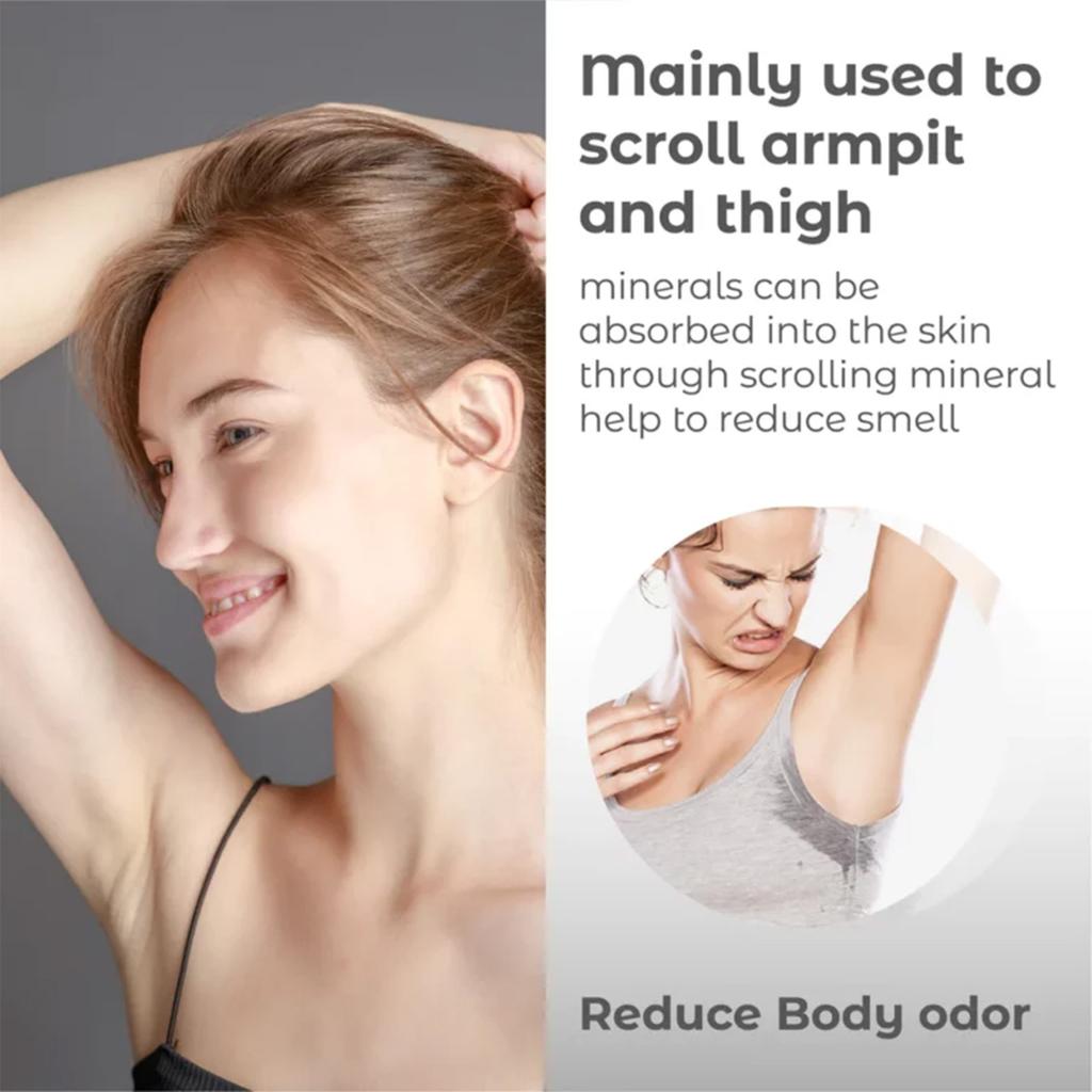 Минералы могут впитываться в кожу через прокрутку. Минералы помогают уменьшить запах.