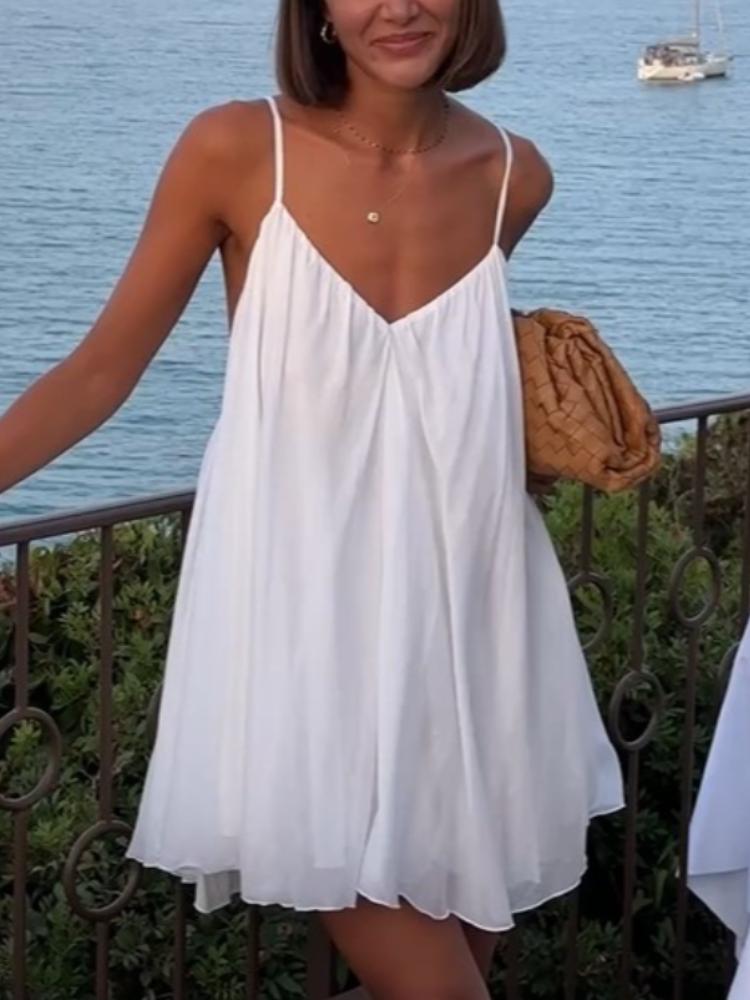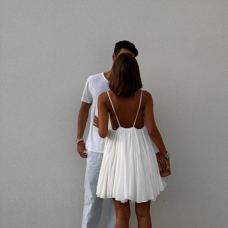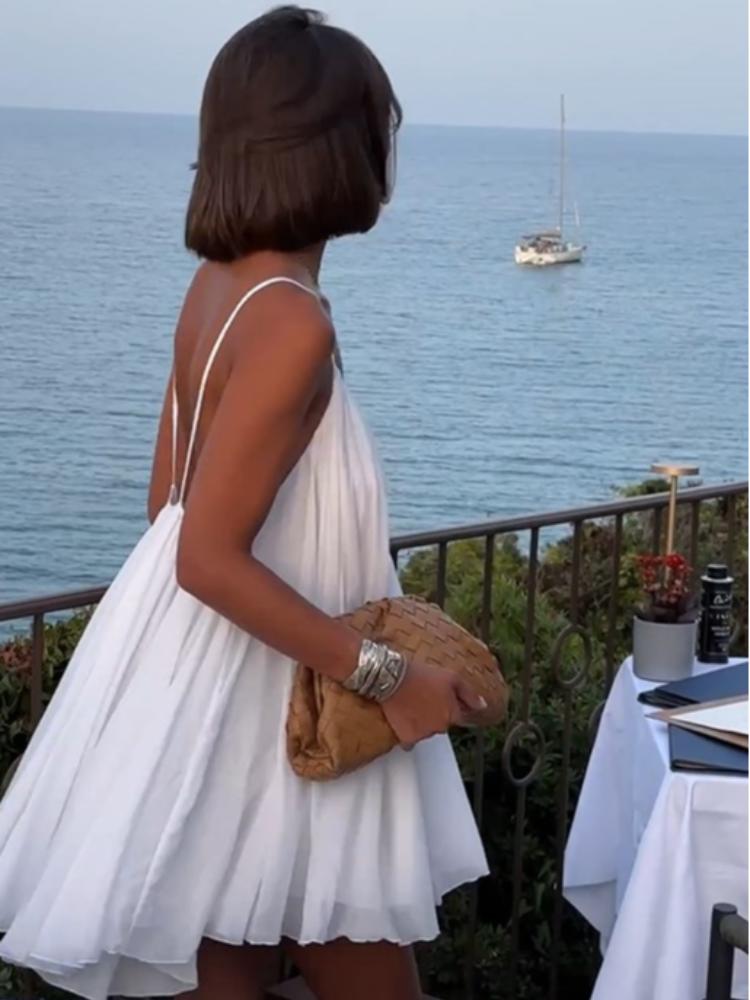Y2k сексуальное пышное плиссированное мини-платье с открытой спиной, женское элегантное пляжное короткое платье без рукавов с v-образным вырезом, модное шикарное вечернее платье трапециевидной формы