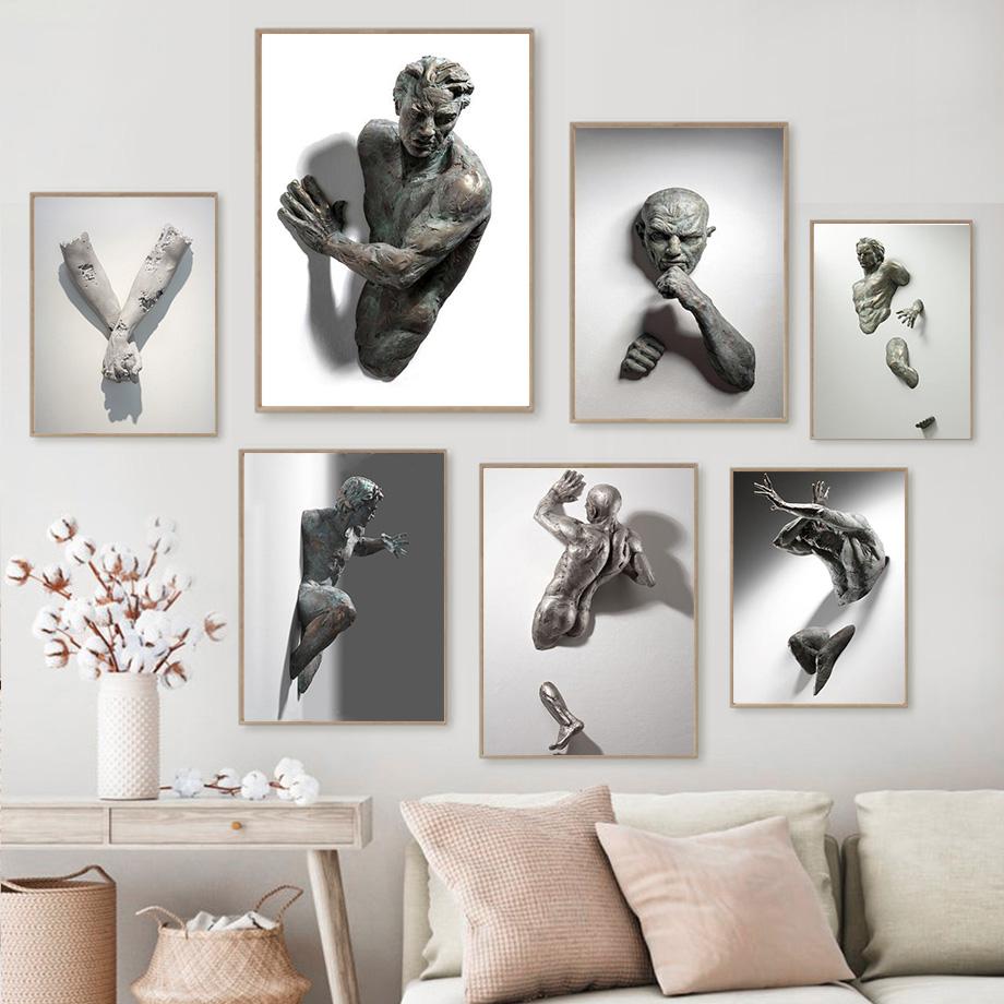 Абстрактная статуя, рисунок на холсте, визуальные 3D эффекты, плакаты, принты, настенная художественная картина для гостиной, домашний декор, подарок Cuadros — купить товар онлайн с бесплатной доставкой по всему миру!
