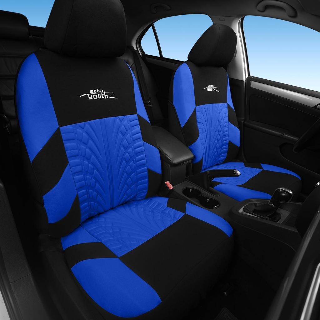 Синий/черный универсальный комплект чехлов на сиденья, чехлы на передние сиденья, чехлы на задние сиденья и чехлы на сиденья грузовиков. Разнообразие стилей и интерьеров автомобилей.