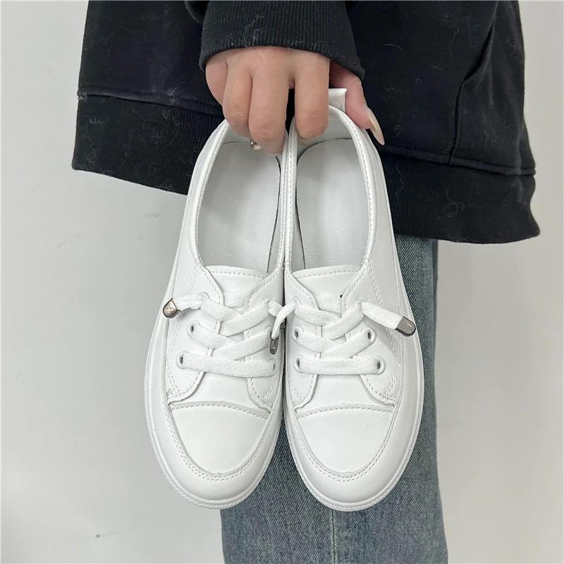 Кроссовки на низкой платформе, женская обувь, женские прогулочные кроссовки из искусственной кожи, лоферы, белая повседневная обувь без шнуровки на плоской подошве, 2024
